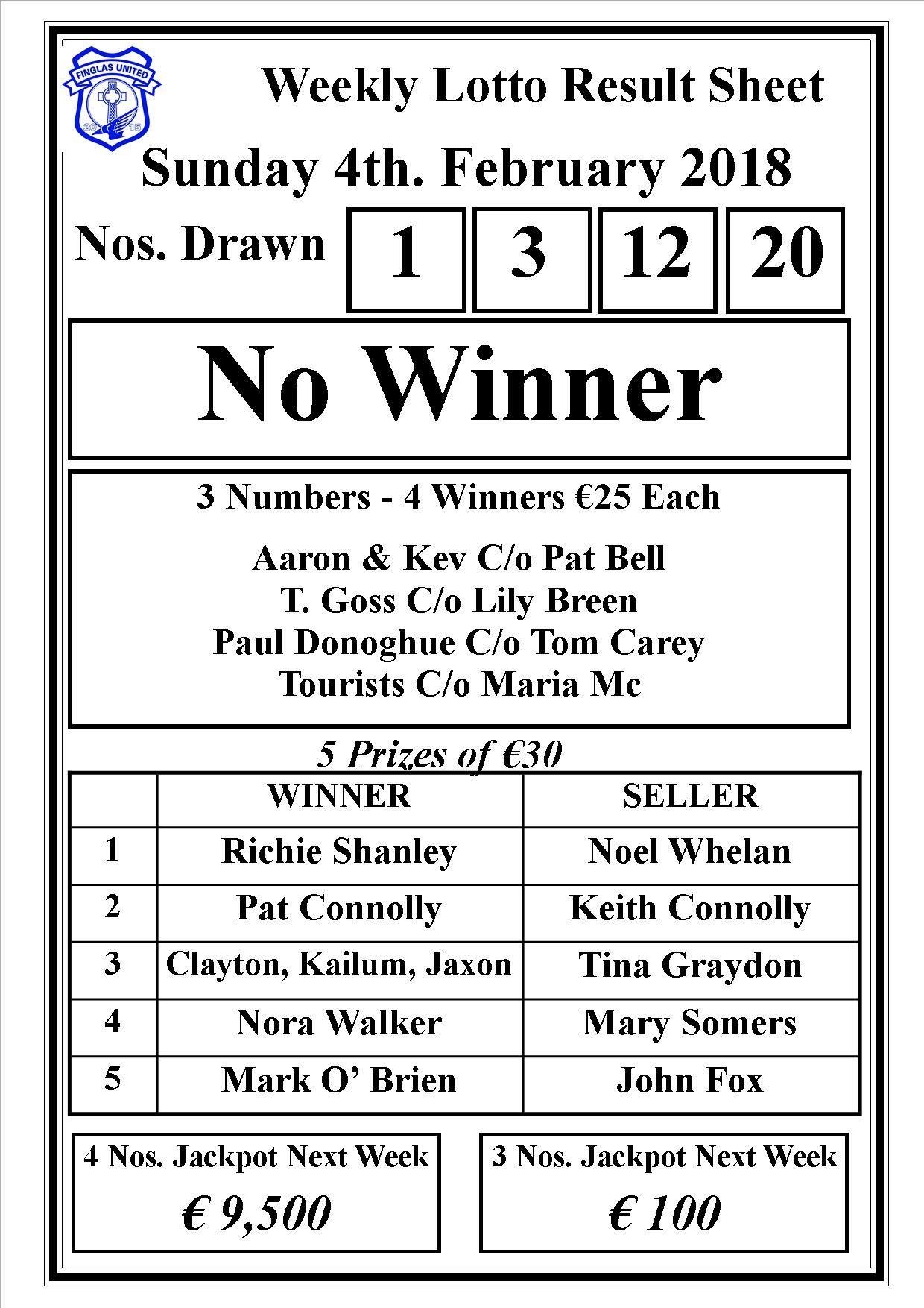 Club lotto results 4th of February 2018