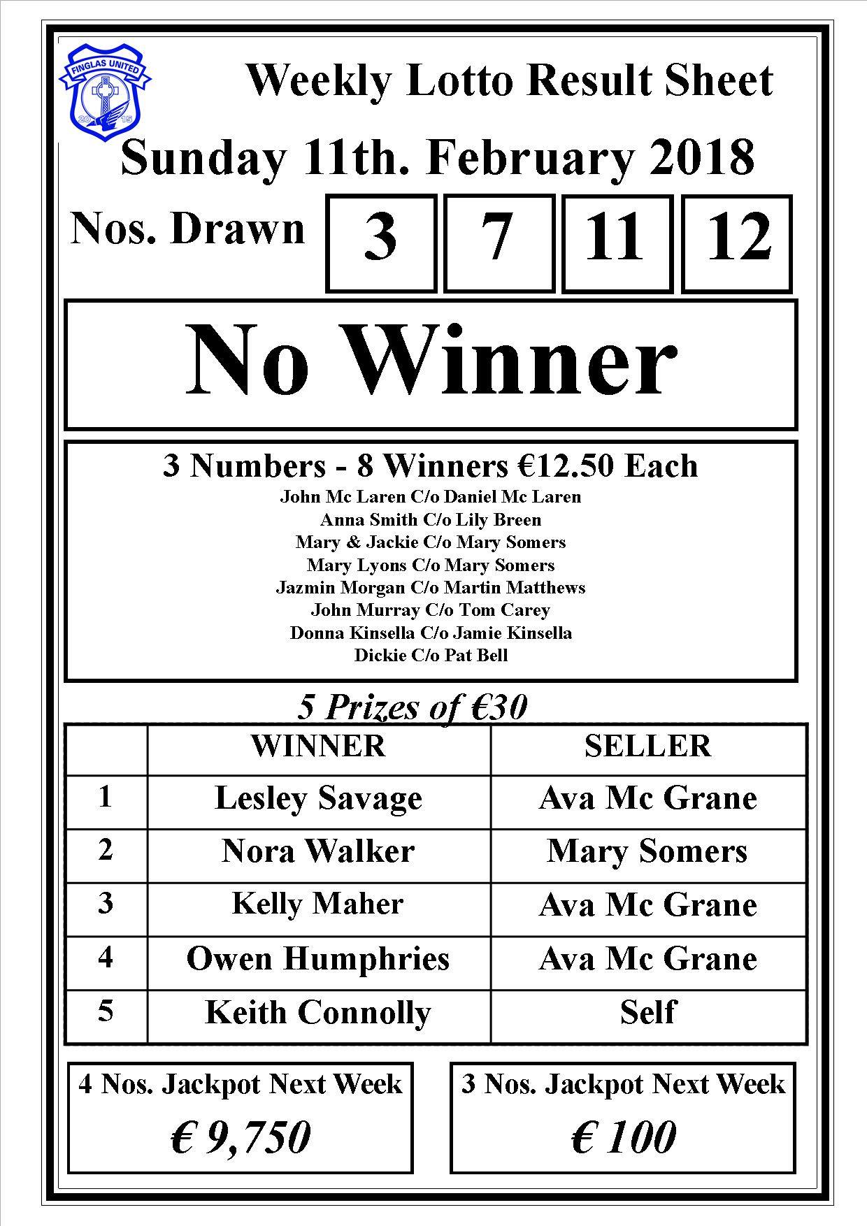 Club lotto results 11th of February 2018