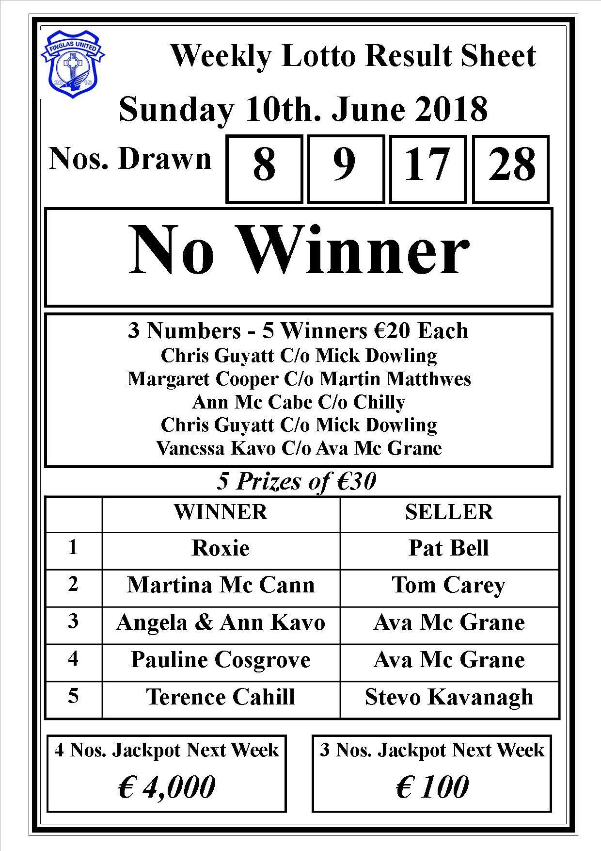 Club lotto results 10th of June 2018